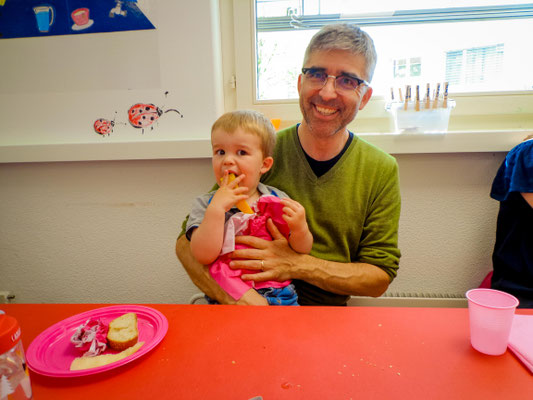 Als alle Eltern eingetroffen waren, begrüsste Yara die Eltern nochmals und eröffnete den Frühlingsbrunch. Die Kinder stürzten sich voller Freude auf das leckere Büffet. Die Eltern hielten sich am Anfang noch zurück. Doch sobald der Magen gefüllt war, wurde auch mehr gesprochen und zum Teil neue Kontakte geknüpft unter den Familien.