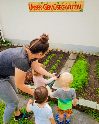 Da in den darauffolgenden Tagen meist schönes Wetter war, hielten wir uns viel im Garten auf. Dies war eine super Möglichkeit um den Kindern den Wachstumsprozess der Pflanzen näher zu bringen. Täglich haben wir gemeinsam den Garten bewässert.