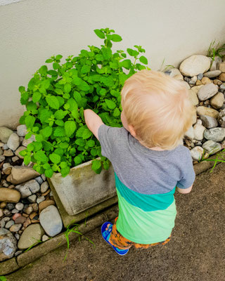 Die Samen haben wir Reihenweise verteilt. Um das Warten zu verkürzen haben wir noch Setzlinge gekauft, welche bereits sichtbar aus der Erde ragten. In den Töpfen gegenüber dem Gemüsegarten haben wir Schnittlauch, Pfefferminze und Zitronenmelisse angepflanzt. Dieser ist bereits zu einem großen Busch herangewachsen.