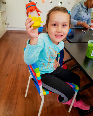 und machten gut mit. Auch die Kleinsten hatten Freude am Tanzen und Malen. Die Kinder durften ihr Instrument selbst gestalten und danach auch zum Spielen benutzen. Das Projekt ist uns gut