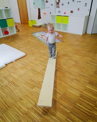 Ein paar Tage später folgte dann schon die nächste Überraschung: Auch im Garten haben wir nun Purzelbaum-Material. Mit den Leitern und Brettern können wir wunderbar klettern und rutschen. Wir sind jeden Tag ganz aufgeregt bis wir endlich in den Bewegungsraum und in den Garten können. Denn wir Purzelbaum-Kinder bewegen uns riesig gerne!