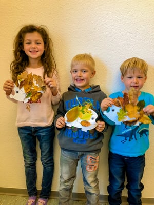 Passend zu unserem Herbstthema durften wir einen abenteuerlichen Herbstspaziergang durch den Wald erleben. Auf unserem Weg sammelten wir viele bunte Herbstblätter. Mit den gesammelten Blättern, Kastanien und vielen neuen Eindrücken machten wir uns auf den Rückweg.