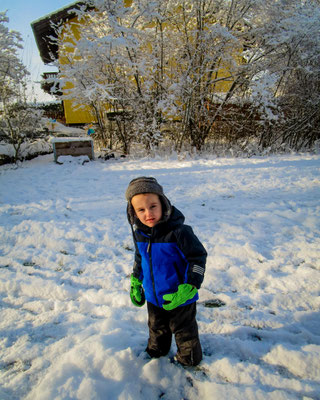 Die ganze Woche schon haben wir dieses und andere Schneelieder im Kreis gesungen und endlich war es soweit. Der Schnee kam bis zu uns in den Kita-Garten herunter.