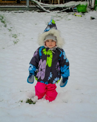 Am Fenster schauten wir gespannt den lustigen Flocken bei ihrem Tanz vom Himmel zu und waren schon ganz schön aufgeregt. Endlich schneite es! Der ganze Garten lag schon unter einer weissen Decke und immer mehr Flocken vielen vom Himmel. Wir konnten es kaum erwarten nach draussen zu gehen.