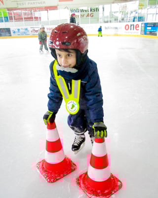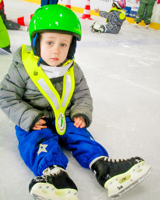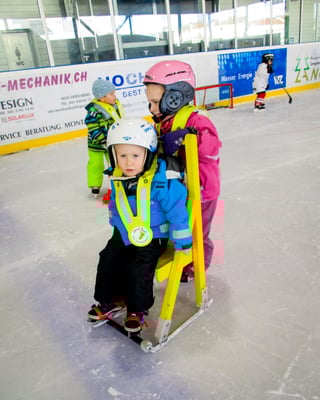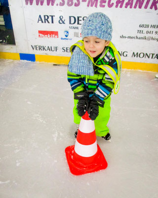 Zu Beginn war alles ziemlich „gwagglig“ und wir flogen ab und zu auf den Hintern. Mit der Zeit und mit den Hilfsmitteln, die für uns auf dem Eis zur Verfügung standen, klappte es jedoch immer