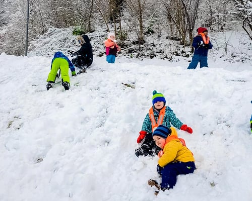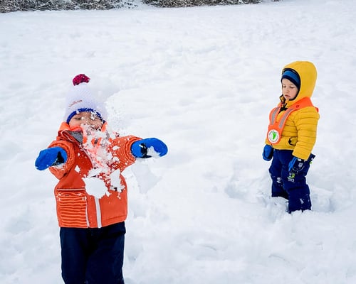 Endlich hat es geschneit, Juhui! Als wir die Betreuerinnen fragten was wir am Nachmittag machen werden und sie uns antworteten, dass wir im Schnee spielen gehen, war unsere Vorfreude sofort geweckt. Voller Freude zogen wir unsere Skianzüge, Handschuhe, Schuhe und Kappen an.