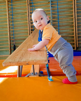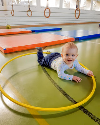 wir den Kita-Frauen gesagt. Wenn man mit den Ringschaukeln richtig hoch war, kitzelte es so lustig im Bauch. Nach langem Rumtoben war es dann leider auch schon wieder Zeit, die Turnhalle zu