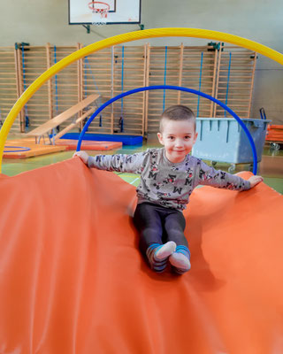 Yipiiee, wir durften die Turnhalle in Malters besuchen. Nach der Mittagspause machten wir uns in der Kita bereit zum Aufbruch Richtung Turnhalle und spazierten dann gemeinsam hin. Auf dem Weg wurden wir immer ungeduldiger und konnten es kaum erwarten. Die Vorfreude war riesengross. In den Umkleideräumen haben wir unsere Turnsachen angezogen und dann ging es endlich in die Turnhalle rein. Mit den Kita-Frauen zusammen durften wir uns dann einen grossen Turn- und Kletterparcour aufbauen. Es gab so viele Turngeräte, die wir entdecken wollten. Rutschen, Schaukeln, Fussball spielen, Rennen, Klettern, Hüpfen…