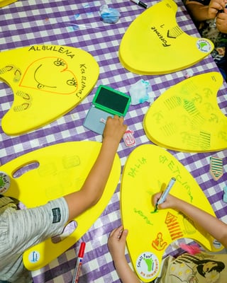 In Mithilfe der small Foot Schwimmschule haben wir mit rund 230 Kindern kostenlose, gelbe Schwimmbrettli für die Sommersaison bestempelt und kunterbunt gestaltet, sowie bemalt.
