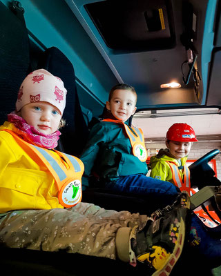 Schon sehnsüchtig haben wir auf diesen Morgen gewartet und endlich war er da – unser Feuerwehrmorgen. Voller Vorfreude haben wir uns in der Kita angezogen und konnten es kaum erwarten, uns auf den Weg zu machen. Bei dem Feuerwehrposten Malters angekommen, hat uns Feuerwehrmann Erich bereits erwartet. Wir waren aufgeregt und anfangs ein bisschen schüchtern vor einem waschechten Feuerwehrmann zu stehen. Zu Beginn hat er uns durch alle Räumlichkeiten geführt und die Feuerwache von innen gezeigt. Im Materialraum durften wir dann eine Sauerstoffflasche, einen echten Feuerwehrhelm und Feuerwehrhandschuhe anziehen. Besonders die Sauerstoffflasche war super schwer. Danach haben wir gemeinsam einen Rundgang bei den verschiedenen Feuerwehrfahrzeugen gemacht. Beim Löschfahrzeug hat Erich uns dann genaustens erklärt, welche Materialien und Ausrüstungen alle benötigt werden. Wir haben Erich ganz gespannt zugehört. Aber das größte Highlight war, dass wir ins Löschfahrzeug sitzen durften und der Feuerwehrmann Erich das sogar Blaulicht eingeschaltet hat. Dann haben wir uns bedankt und auf den Rückweg in die Kita gemacht. Dies war ein eindrücklicher Ausflug. Wir danken Feuerwehrmann Erich für seine Zeit und die super tolle Führung!
