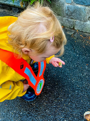 Heute ist ein Regnerischer Tag, doch wir sind motiviert, um nach draussen zu gehen. Wir ziehen unsere Regenhosen, Jacken und Gummistiefel an und machen uns auf den Weg, um viele Schnecken zu suchen. Wauu…Wir haben so viele grosse Schnecken gefunden. Uns überraschte sehr, dass alle Schnecken ein riesen grosses Schneckenhaus haben. Gemeinsam mit unseren Kita Frauen haben wir die Schnecken zu einem Schneckenrennen vorbereitet. Wir haben ein Start und ein Ziel gemalt. Loss ging es, die Schnecken hatten sich an den Start gestellt und krochen alle langsam in alle Richtungen Ziel. Als die meisten Schnecken am Ziel angekommen waren, haben wir uns mit den Schnecken zusammen Fotografiert und die Fotos am Abend unseren Eltern voller Stolz gezeigt.