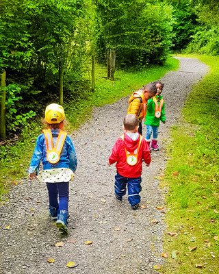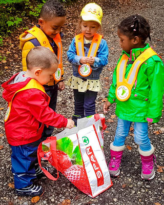 Als wir im Wald ankamen sahen wir eine schöne Farbenpracht. Alle Bäume waren Bunt gelb, grün, orange und rot gefärbt. Petra erklärte uns, dass wir nur die Blätter auf dem Boden einsammeln dürfen, da wir keine Blätter von den Bäumen reissen dürfen, da dies den Bäumen weh tut und es an dieser Stelle nicht mehr wachsen kann. Wir hatten viel Spass, jeder von uns durfte selber Blätter sammeln und sie in eine Tüte geben. Wir sahen ausserdem noch Waldbewohner wie Schnecken und Würmer, die wir ganz gespannt beobachtet haben. Petra erklärte uns, dass wir langsam zurück in die Kita gehen, wo die Kinder die Blätter zwischen Bücher pressen dürfen. So kann jeder am Mittwoch einen schönen Herbstbaum basteln. Wir freuten uns und jubelten laut.