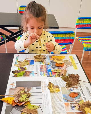 Als wir in der Kita angekommen sind haben wir voller Freude und Stolz unsere gesammelten Blätter Paula präsentiert. Sie machte grosse Augen und sagte uns, dass wir da ein paar ganz schöne Blätter gesammelt hätten.