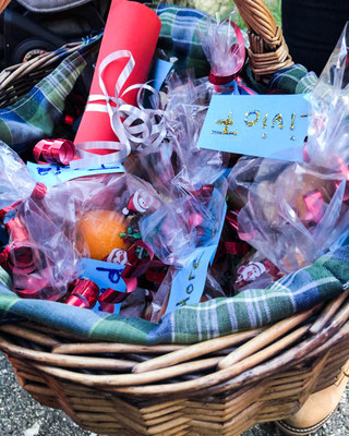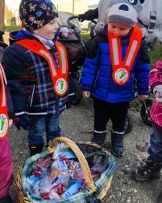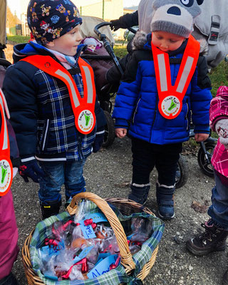 Nach dem Mittagessen durften wir uns dick und warm anziehen und schon ging es los in den Wald. Der Rucksack war mit Punsch und wir Kinder waren mit voller Energie und Vorfreude gefüllt. Als wir nach kurzem spazieren den Wald erreichten, fingen wir an dem Samichlaus und seinem Esel zu rufen. Nach vielem und lautem rufen, sahen wir einen grossen Korb am Waldrand stehen. Wir sprangen aufgeregt zum Korb und konnten es kaum glauben, dass uns der Samichlaus einen Korb voller Chlaus-Säcke dagelassen hat. Unsere liebe Nadia entdeckte zusätzlich einen handgeschriebenen Brief vom Samichlaus. Darin stand, dass wir schöner mit dem Besteck essen sollten und dass er gehört hat, dass das Aufräumen nicht besonders gut klappe. Er wünsche sich, dass dies ab nun besser klappt. Rühmen durfte uns der Samichlaus natürlich auch, denn wir passen immer aufeinander auf, insbesondere auf die Kleinen. Früchte und Gemüse essen wir sehr gut und wir teilen unsere Spielsachen gerne mit den anderen Kindern.