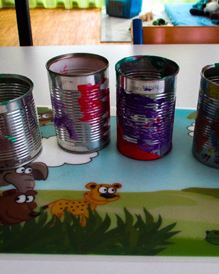 Da bald schon wieder der Frühling kommt, haben wir uns schon vorbereitet. Wir haben alle zusammen Dosen bemalt in ganz bunten Farben. Danach mussten wir warten, bis die Farbe getrocknet ist und haben in dieser Zeit ganz gespannt die Geschichte gehört, «Frühling wird es nun bald».