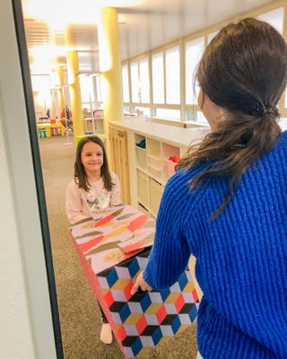 Vor etwa einem Monat hing in unserem Spielzimmer ein neues Plakat. Im Mittagskreis erfuhren wir dann von den Krippenfrauen, dass die Kita umziehen wird. Auf dem Plakat konnten wir sehen, wie lange es noch dauert bis dahin. Wir durften dann jeden Mittag ein neues Mändeli auf das Plakat kleben, bis es den ganzen Weg in die neue Kita hinter sich hatte. Und dann war der grosse Tag da. Wir durften helfen die Kisten mit unseren Lieblingsspielsachen hinüber zu tragen und auszupacken. In der neuen Kita haben wir einen sehr grossen Purzelbaum-Bereich, in dem wir uns ausgiebig austoben können. Aber auch alle anderen Spielsachen, wie die Autos, Puppen und Legos haben wir mitgenommen. Wir freuen uns, dass wir bis im September in diesen Räumen spielen dürfen, während die alte Kita für uns umgebaut wird.