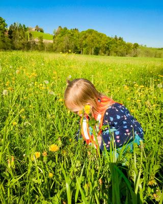 Frühlingsfarben! Das lassen wir uns doch nicht entgehen, gemeinsam einen grossen Blumenstrauss für die Kita zu pflücken. Oder doch noch einer mehr für Mama? Und für Oma? Und für die