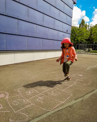 Wir lagen mit unserer Vermutung falsch, doch wir haben erfahren, dass wir selber Kreide machen dürfen. Jeder von uns hat seine eigene Schüssel bekommen, um die Zutaten hinein zu geben. Zuerst bekamen wir einen halben Becher mit Gips, danach einen vollen Becher mit Wasser und zu guter Letzt durften wir die Farben für unsere Kreide aussuchen. Wir mussten die Zutaten lange umrühren bis es zu einer festen Masse wurde. Danach füllten wir die Kreidenmasse in Muffinformen ein, um es aushärten zu lassen. Am nächsten Tag konnten wir es kaum abwarten, mit den Kreiden zu malen. Als wir die Frauen fragten, ob die Kreiden fertig sind, sagten sie uns, dass wir sie heute schon testen können. Einige Minuten später gingen wir dann nach draussen. Wir schauten in den Himmel und kamen gleich auf die Idee den Himmel und die Hölle zu zeichnen. Wir sind so glücklich, dass unsere Kreiden so gut funktionieren. Yuhuu!