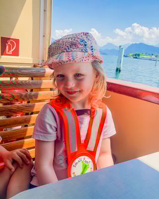 Nach dem Mittagsschlaf packten wir unsere Rucksäcke mit Wassermelone und feinen Crackers, zogen uns sommerlich an und fuhren mit dem Zug Richtung Bahnhof Luzern. Aufgeregt schauten wir uns die Landschaft an und konnten es kaum erwarten, beim Schiffssteg ins „Rütli“ Schiff einzusteigen. Unsere Schiffsfahrt ging von Luzern nach Tribschen, Verkehrshaus-Lido, Hermitage und endete beim Schloss Meggenhorn. Während der Fahrt konnten wir Segelschiffe, Pedalos, ein Polizei-Schiff und das Dampfschiff sehen. Beim Schloss Meggenhorn stiegen wir aus und machten uns auf den Weg zum Spielplatz. Beim Spielplatz tobten wir uns aus, sprangen herum und besuchten die Tiere beim Bauernhof. Nach dem Spielen und nach dem Besuch beim Bauernhof hatten wir einen riesen Hunger und füllten unsere Bäuche mit der mitgebrachten Wassermelone und den Crackers. Mit vollem Bauch gingen wir mit dem „Rütli“ Schiff wieder Richtung Luzern zurück und fuhren mit dem Zug zurück in die Kita.