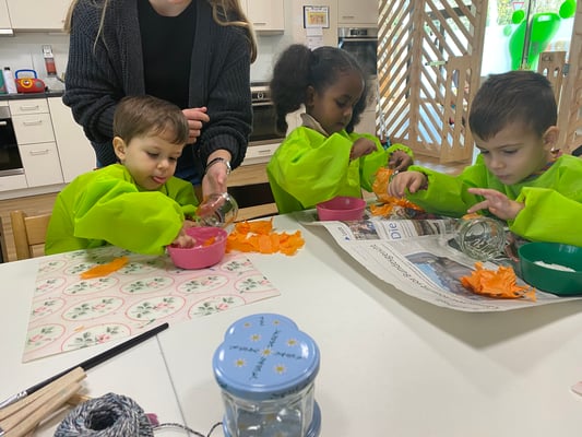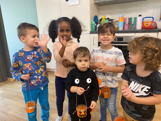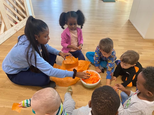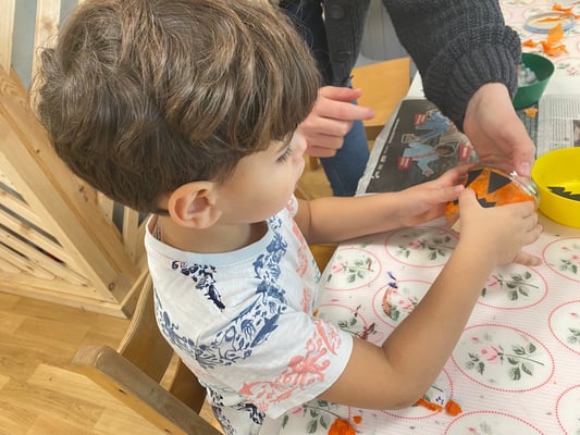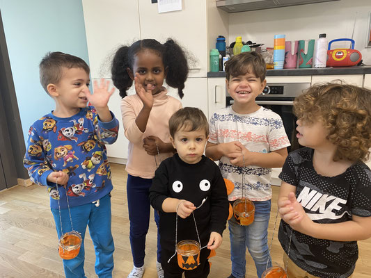 Am Freitagmorgen stand auf unserem Wochenplan, dass wir passend zum Thema Halloween Kürbiskörbchen basteln.