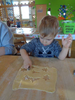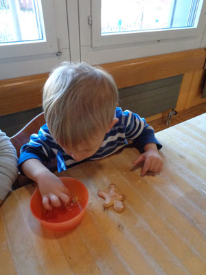 viele mehr. Diese Aktivität fördert spielerisch unsere Grobmotorik. Wenn die Guetzli fertig gebacken sind dürfen wir sie verzieren. Dafür nehmen wir Puderzucker, Zitronensaft und