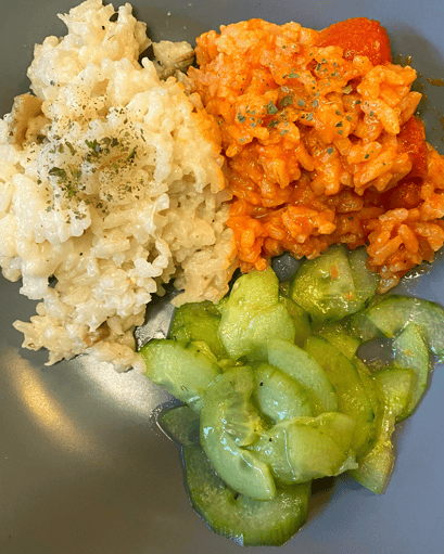 So haben wir Currywurst und Pommes, Linsen Curry, Risotto, Fischstäbli sowie Älplermagronen gegessen.