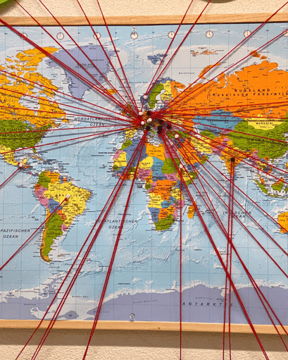 Weltkarte hängen. Dies symbolisiert nun unseren Zusammenhalt und die Vielfalt, von welcher wir jeden Tag profitieren dürfen.