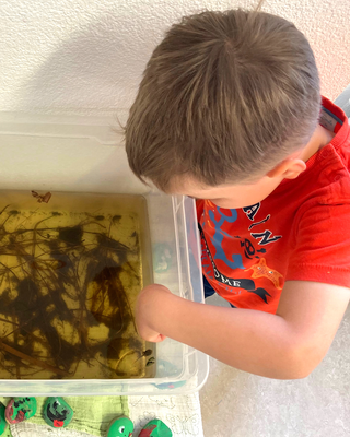 Das Froschaquarium steht nun im Gruppenzimmer und gemeinsam mit den Kita Frauen freuen wir uns darüber, die Kaulquappen zu beobachten und im Aquarium zu suchen. In wenigen Tagen haben die