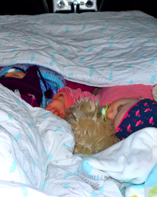 Im Auto war schon alles vorbereitet. Es sah sehr kuschelig aus. Alles war mit Decken und Lammfellen ausgestattet. Wir kuschelten uns im Kofferraum aneinander und lauschten der Musik zu. Bald schleifen wir ein, denn der Morgen war anstrengend mit den vielen verschiedenen Eindrücken.