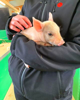 Schon im Auto stellten wir viele Fragen und freuten uns riesig auf die Schweine und die kleinen Ferkel. Sie haben uns nämlich erzählt, dass es dort Baby-Schweine gibt. Dort angekommen, begrüsste uns der Bauer. Gleich ging es los und wir liefen zu den Ferkeln. Die waren so klein, wir durften sogar welche auf den Arm nehmen. Nicht ganz allen war das geheuer. Einige schauten lieber, wie die Grossen die Ferkel halten.