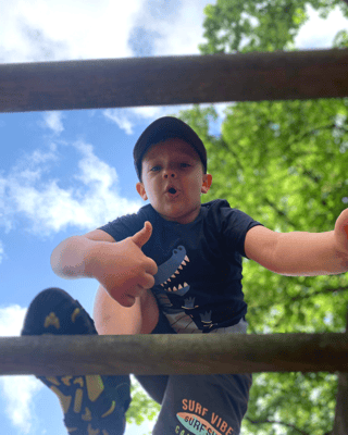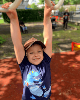in dem wir auf das Klettergerüst geklettert sind und die Schaukeln getestet haben.