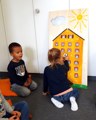 aufkleben. So können wir alle sehen, welche Kinder und Betreuerinnen in der Kita sind, welche Ferien haben oder wer krank ist. Wenn wir alle Bilder aufgeklebt haben, singen wir gemeinsam das