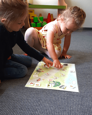Ein sehr wichtiges und schönes Ritual ist bei uns der Morgenkreis. Den starten wir am Morgen um 09.00 Uhr gemeinsam im Gruppenzimmer. Wir dürfen dann einzeln unser Tierbild auf der bemalten Tafel
