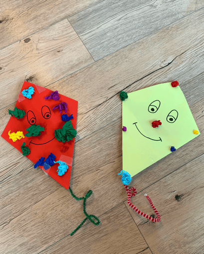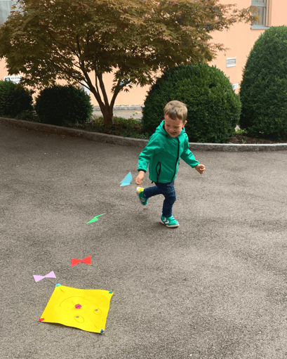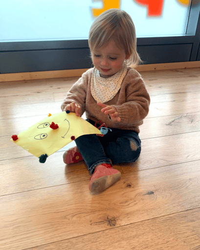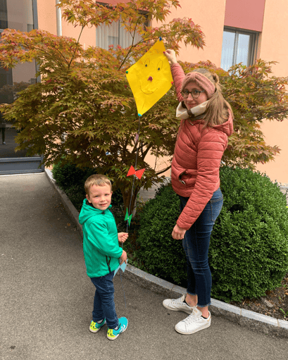 Wauuu unsere selbstgemachten Drachen steigen in die Luft. Gemeinsam springen, tanzen und singen wir den Drachen nach. Puuuhhh jetzt wird es aber langsam kalt. Nun machen wir uns wieder auf den Weg in die Kita, dort angekommen kuschelten wir uns im Bücherecken unter die warmen Decken und hörten gespannt der Geschichte zu, die im Kassettenrecorder zu hören ist.