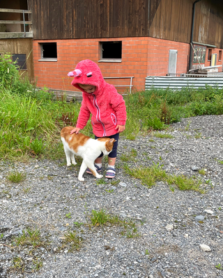 Kälbli. Sie versuchten unsere Hand abzuschlecken, ihre Zunge kitzelte uns ganz schön. Auch das Büsi hat uns auf unserem Weg begleitet und sich zwischendurch eine Schmuse-Einheit abgeholt.
