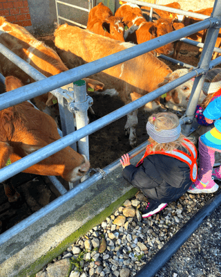 Als wir dann weiter gingen, haben wir uns riesig gefreut, als wir sahen, dass die Kühe heute im Stall und nicht auf der Weide waren. So konnten wir ganz nahe zu ihnen. Soooo härzig waren die