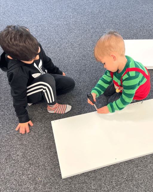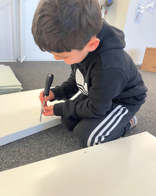 Wir wechselten uns immer wieder ab, damit einer mal Pause macht und der andere eine Schraube rein schraubt. Das erleben wir auch nicht alle Tage, dass wir Möbel zusammenbauen dürfen. Umso mehr