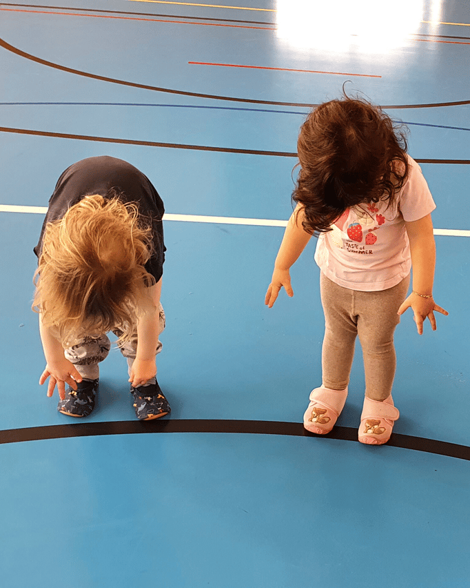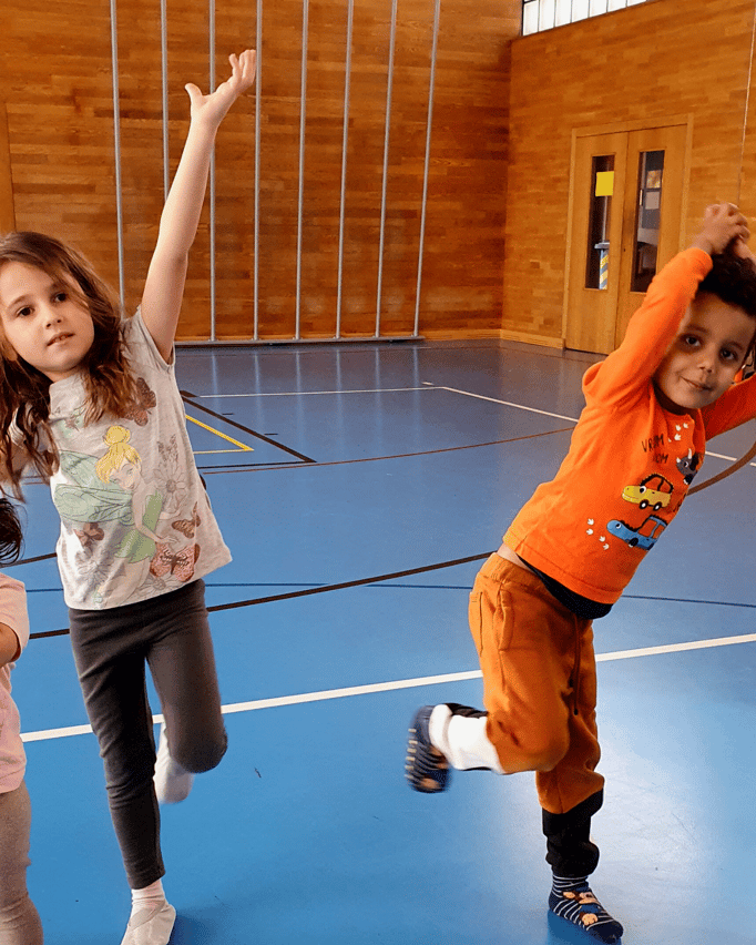Bevor wir mit den geplanten Übungen anfingen, wärmten wir uns gemeinsam auf. Die Betreuungspersonen zeigten uns zuerst einige Aufwärmübungen vor, die wir mit Freude nachahmten. Gemeinsam