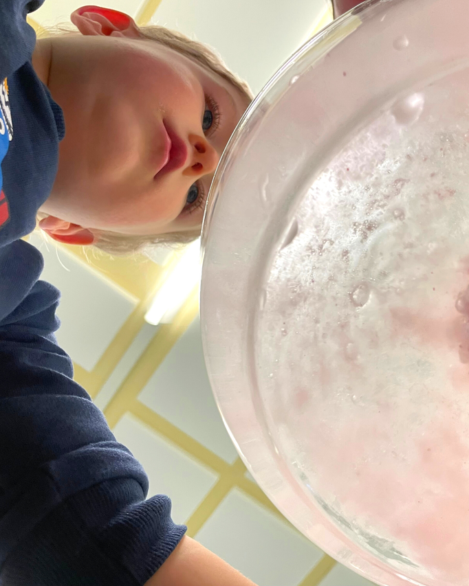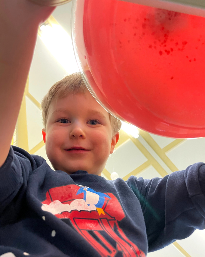 OH! Ein Wasserbecken steht für uns bereit. Gespannt legen wir unsere bunten Kugeln in das Becken und beobachten gemeinsam, wie sie sich aus dem nichts auflösen und auch wieder sprudeln beginnen. Wir haben einen erfolgreichen Experimentiertag und freuen uns auf weitere Forsch-Abenteuer in unserer Kita.