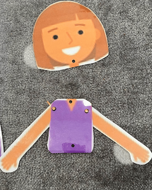 Körperteile anordnen. Das war sehr lustig, da nicht immer alles zusammenpasste. Wir haben es aber schlussendlich geschafft, alle Körperteile richtig hinzulegen, so dass ein Körper