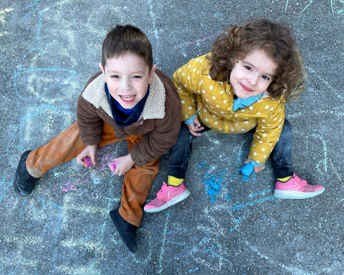in den Garten. Edita brachte uns die Kreide raus und reichte sie uns in die Hand. Wir konnten unseren Garten mit all diesen Farben verzieren und bunt bemalen. Wir haben so viele neue Farben und