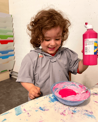 Es hat einen riesen Spass gemacht, die Farben selbst in die Gipsmischung hinein zu leeren und danach mit einem grossen Rührbesen zu mischen. Danach mussten wir unsere Mischung in die Formen