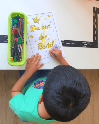 Paula uns was für ein Geschenk wir für unseren Papi machen durften. Ein Pokal für unseren Papi - das ist ja cool.