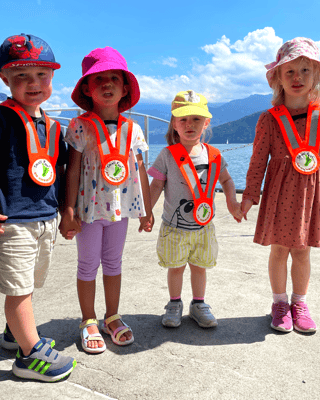 Juupii - heute durften wir auf den Mittagsschlaf verzichten! Denn nach dem Mittagessen ging es schon los zum Schiff fahren nach Luzern. Nach dem Mittagessen packten wir die Rucksäcke mit unseren Trinkflaschen und machten uns bereit, um mit dem Zug nach Luzern zu fahren.