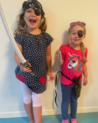 Mit wenig Stühlen, einer Decke als Hängematte, Geschirr, einer Piratenflagge, einem Fernrohr und einem Piratenhut ist unser Piratenschiff eingerichtet. Nun kann es losgehen, alle rufen ganz laut