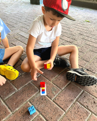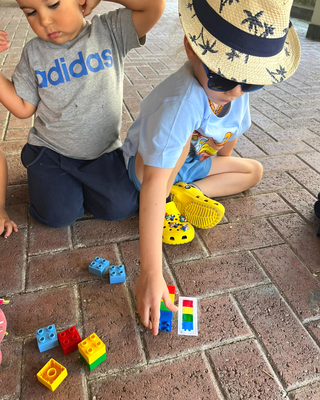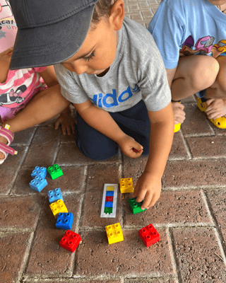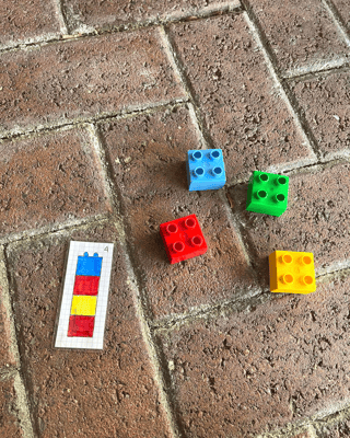 Danach begannen die eigentlichen Formenspiele. Eine Aufgabe war es, die farbigen Legosteine in die richtige Reihenfolge zu bringen. Eine andere, die farbigen Punkte den entsprechenden