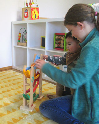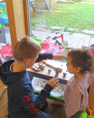 Wir durften den ganzen Tag viel mit den Mädchen und Jungen spielen, sie haben mit uns zusammen Bücher angeschaut oder auf der Werkbank gespielt. Auch im Garten waren wir und hatten ganz viel Spass beim Herumrennen und Verstecken mit den älteren Kindern. Gemeinsam mit ihnen durften wir auch das Znüni und das Mittagessen geniessen. Mmmh.