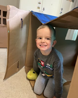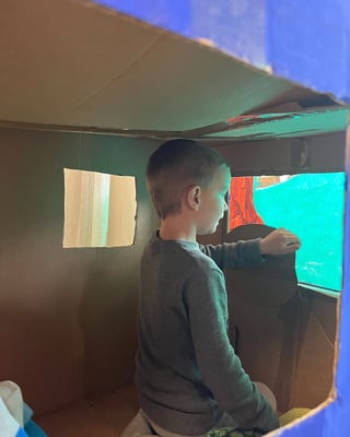 Wir durften sogar von zu Hause viele Materialien mitbringen. Wir haben viele WC-Rollen und riesige Kartonschachteln mitgenommen.