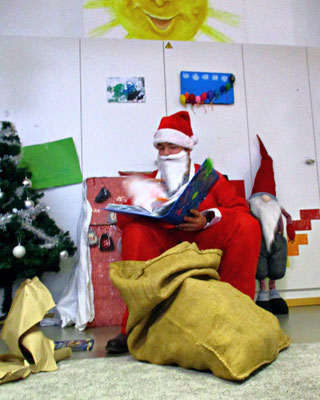 Es hat geklingelt und wir hören die Schritte vom Samichlaus in der Kita. Er setzte sich zu uns und erzählte, wie es ihm geht. Das Buch vom Samichlaus war sehr toll und vor allem gab es viel zu sehen im Samichlaus Buch und wir alle waren mit der Zeit gar nicht mehr so aufgeregt. Der Samichlaus hatte ein sehr grosses Geschenk für uns und wir alle durften das Geschenk zusammen auspacken. Es war ein Puppenhaus. Wir haben uns das sehr gewünscht und der Samichlaus hat unseren Wunsch gehört und erfüllt.