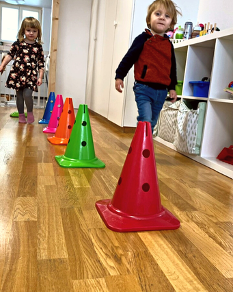 Am Vormittag erklärte uns Nicole den Morgenablauf, was wir heute Tolles machen dürfen. Bevor wir einen Bewegungs-Parkour machen konnten, haben wir uns alle gemeinsam aufwärmt mit einer Bewegungsgeschichte zum Thema Winter. Dabei konnten wir uns alle wie einen Schneemann bewegen. Denn die Kita-Frauen haben uns beigebracht, dass wir immer bevor wir turnen und klettern, zuerst uns aufwärmen sollen, damit die Muskulatur aktiviert werden kann. Es reduziert die Verletzungsanfälligkeit und fördert die Aufmerksamkeit.